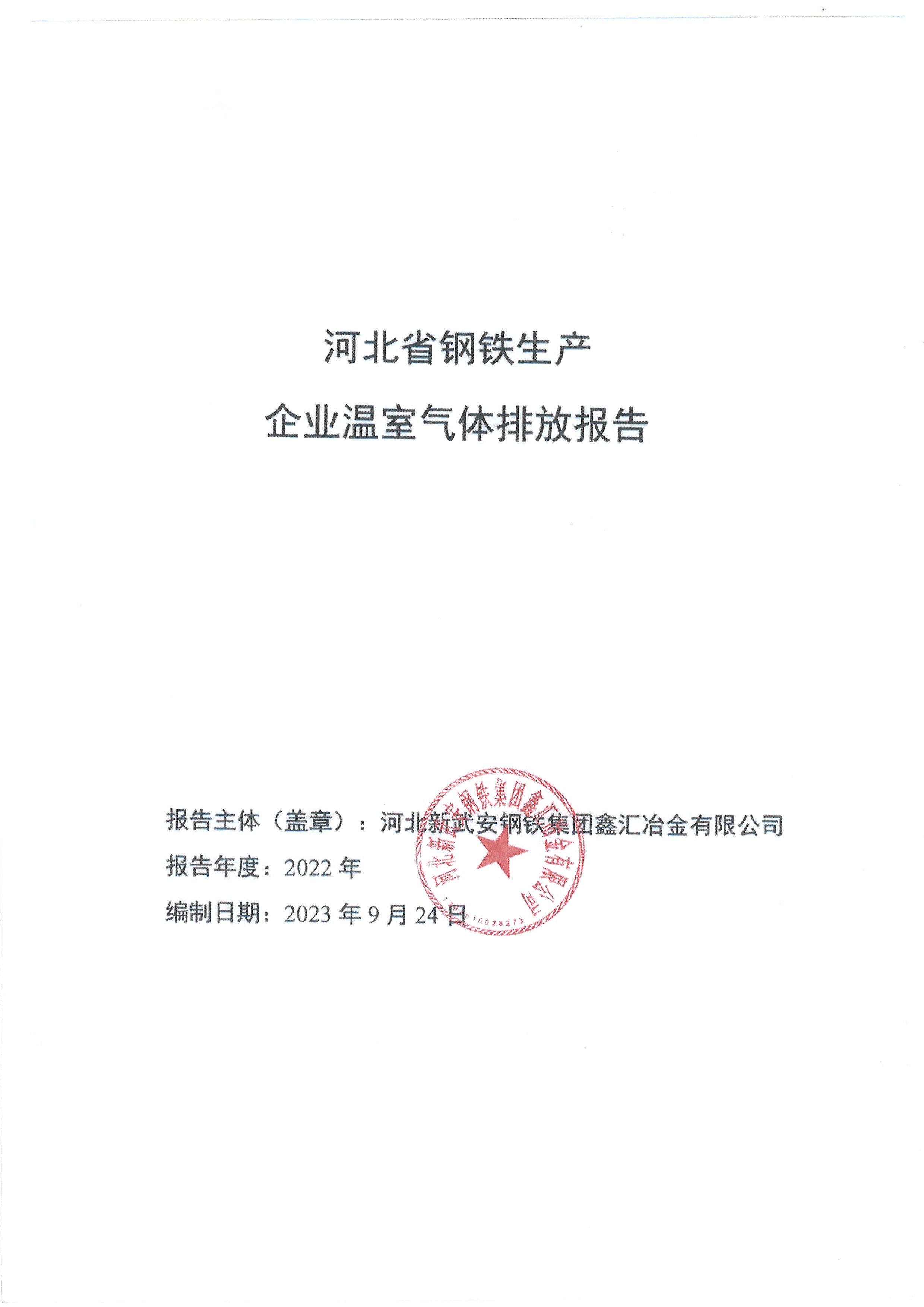 2022年河北新武安鋼鐵集團(tuán)鑫匯冶金有限公司碳排放報(bào)告